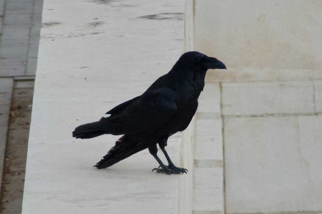 One of the adult Ravens and it’s offspring where sat calmly on the wall as we made our way out this morning. The adult has a damaged wing, but has no problem flying. The light wasn’t great for photography but the residents were posing beautifully.