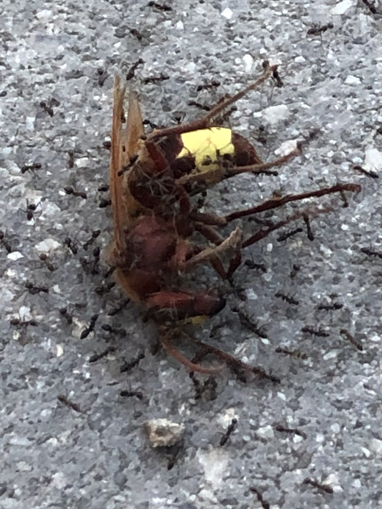 I hope to bring you news of mass migration events any day now, but for now things are fairly quiet on the avian front, so here is some gruesome insect action involving ants, an unfortunate hornet, and an obliging cicada, which normally hang out in the high branches.