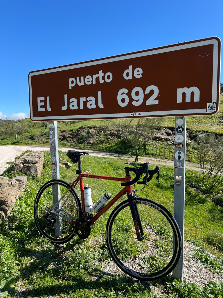 My absolute favorite spot on this ride. Ancient oaks among the olive and almond trees, plus some run down barns provide excellent habitat for a host of bird species. Crested and Wood larks sing from their prospective perches, A Hoopoe flashed it’s barred wings, and a Corn bunting cranked up it’s call, a bit like starting an old petrol lawnmower! Barn swallows flew an inch from the tarmac and reared up just as we passed. Cirl and Rock buntings completed the set, and a pair of Booted eagles passed, well below us, heading up the valley.